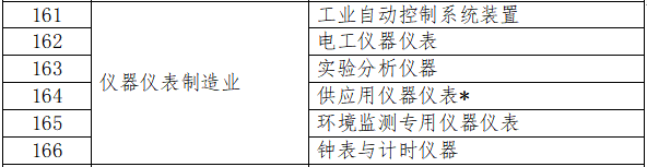其中儀器儀表制造業包括了工業自動控制系統裝置、電工儀器儀表、實驗分析儀器、供應用儀器儀表、環境監測專用儀器儀表、鐘表與計時儀器。